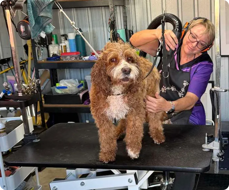 For the safety and comfort of all pets, we recommend that owners do not stay during the grooming process. Dogs tend to be more relaxed and cooperative without their owners