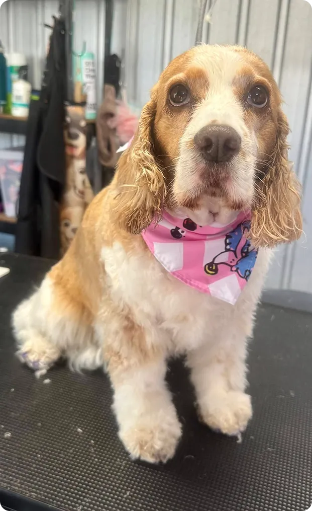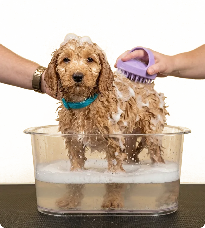 Bath, blow-dry, breed-specific haircut, ear clean, nail trim & finishing spritz. The complete head-to-tail experience for your dog.
