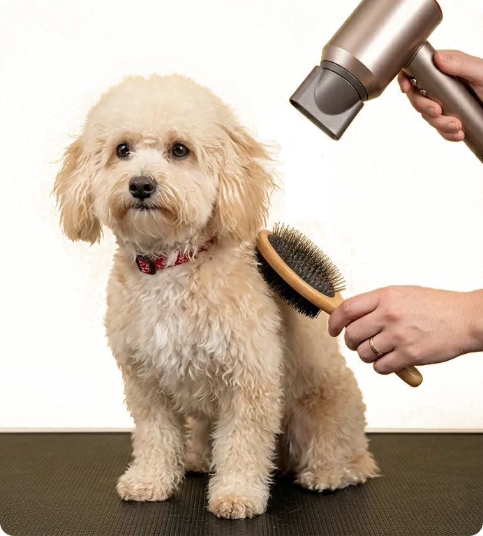 Professional blow-dry that fluffs the coat, removes loose undercoat, and cuts down on shedding at home.